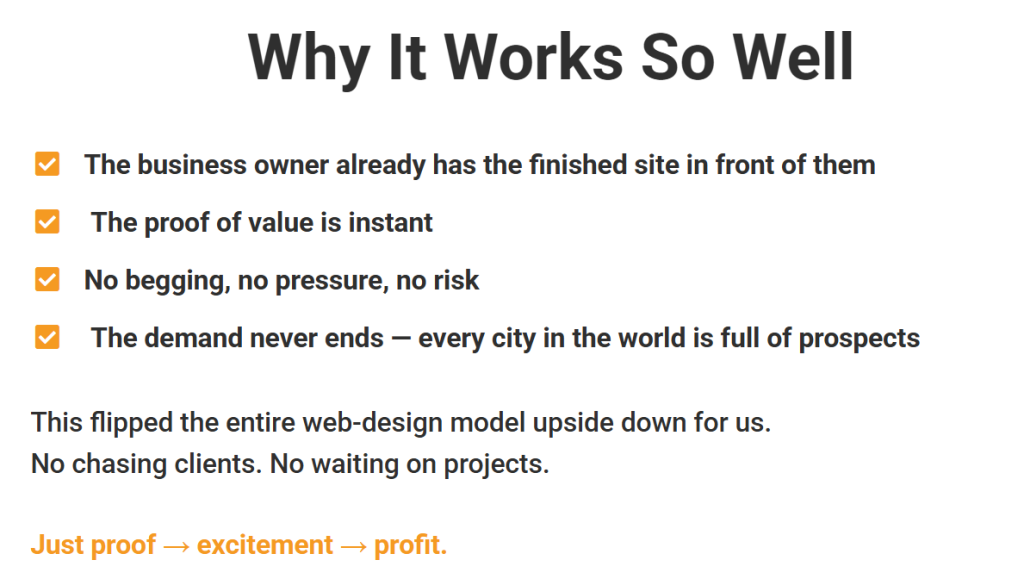Instead of begging people to buy something, this system gives value first, so people want to pay you.