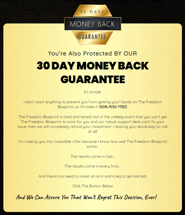 Freedom Blueprint claims to be “The Fastest Way To Make Money Online”, helping users generate up to $1,797.65 every single day with a proven and automated formula. Even better? It comes with a 30-day money-back guarantee, so there’s absolutely no risk in trying it.