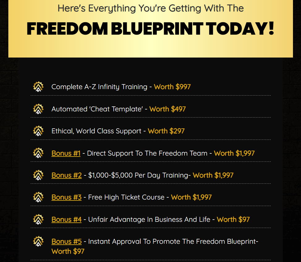 To make your success even easier, when you grab Freedom Blueprint through my link, you’ll receive exclusive bonuses worth hundreds of dollars for free.