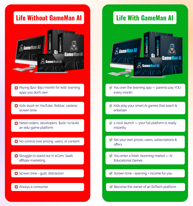 If you want to enter the booming educational technology industry without spending $5000+ on development, Gameman AI is a no-brainer.