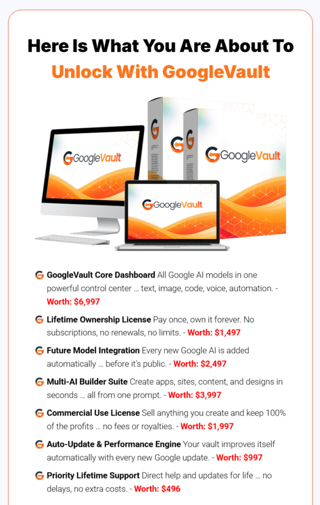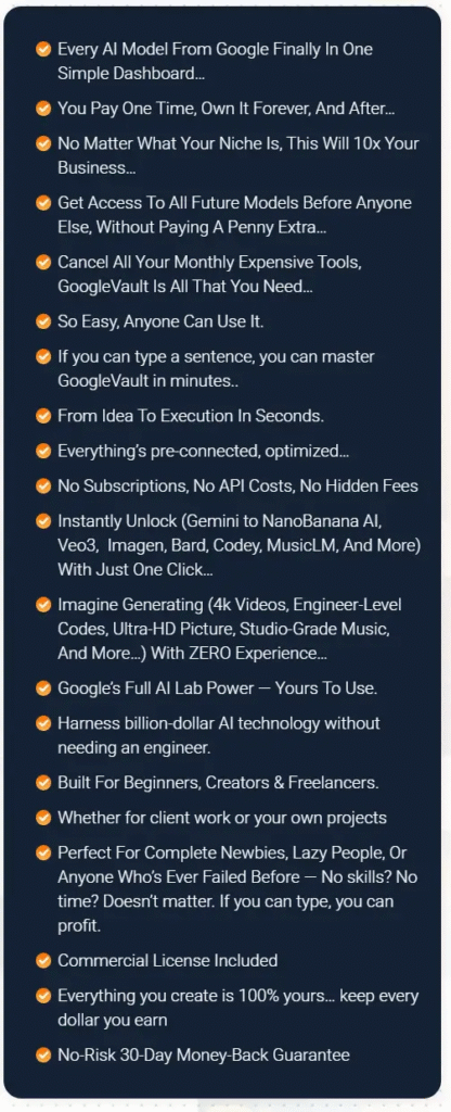 GoogleVault gives you Google’s entire AI lab inside your laptop, letting you create anything with a click — from videos to code to graphics to full marketing campaigns.