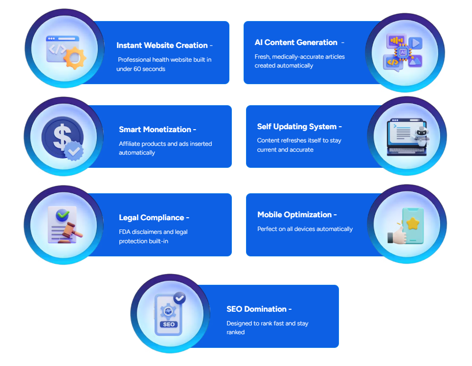 This is the worldโs first AI-powered system that creates, manages, and even updates health websites automatically โ so you can earn passive income without writing a single word or touching a line of code.
