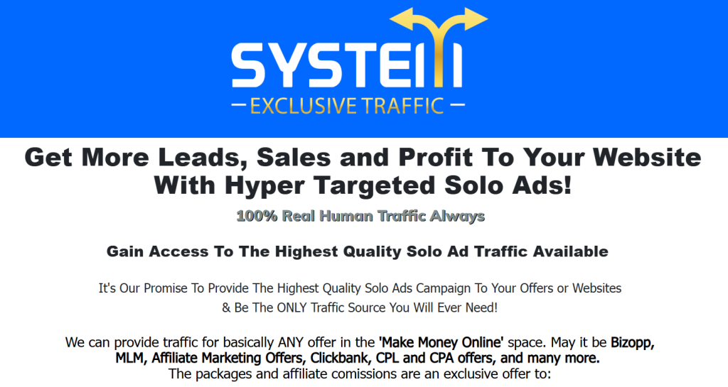 System Exclusive Traffic is a powerful solo ads-based traffic system designed to help marketers, affiliates, and entrepreneurs get more leads, sales, and profits — without any guesswork.