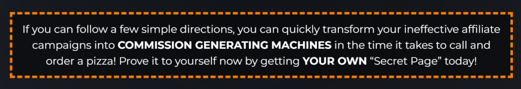 Once you access your member’s area, you’ll get the exact “secret page” template that Will used to generate instant commissions.