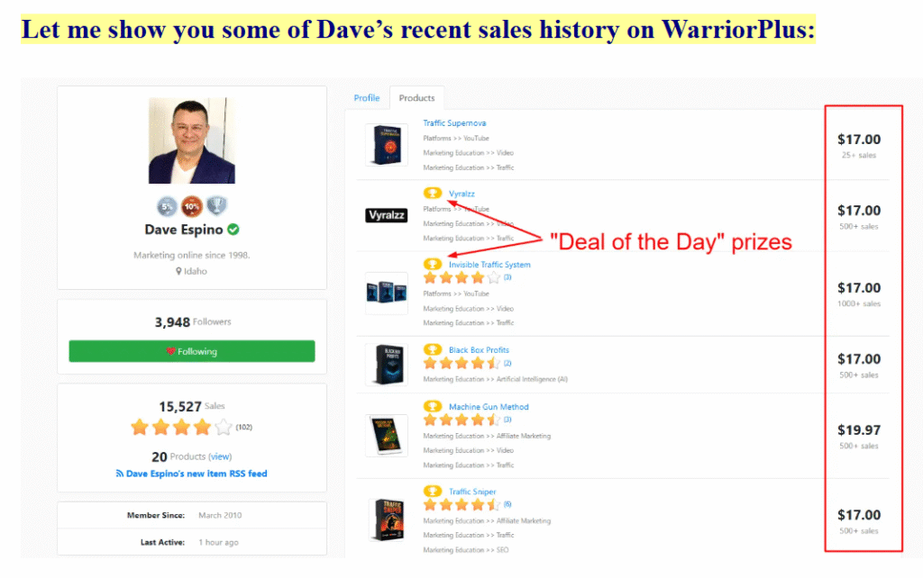 Dave Espino et al., a well-known digital marketer and product creator with multiple successful launches on WarriorPlus.