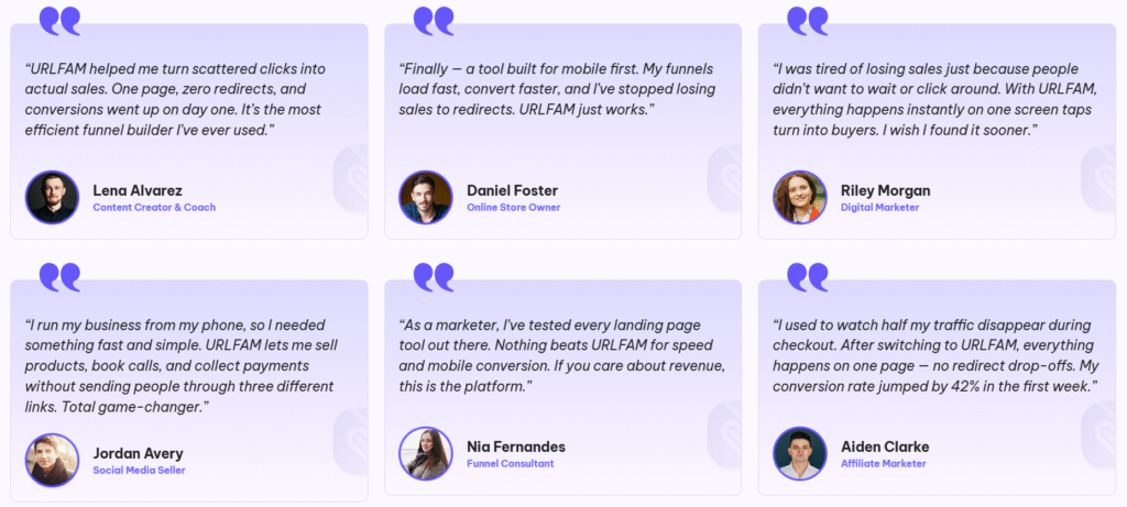 Instead of forcing users through heavy, complicated, slow funnels, URLFAM gives you lightning-fast, scroll-friendly, tappable mobile funnels that match how real humans use their phones today.